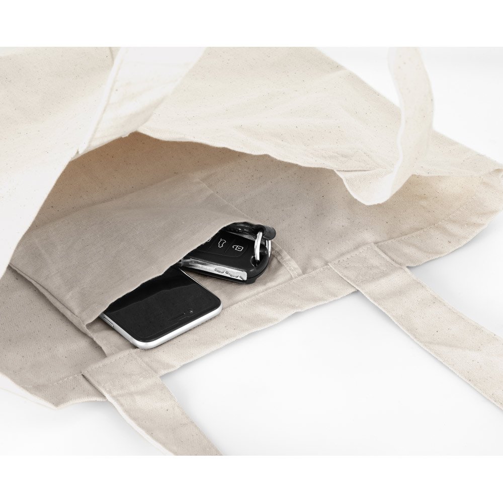 Sacola em 100% algodão canvas (280 g/m²) com bolso interior e alças de 65 cm. 450 x 380 x 105 mm