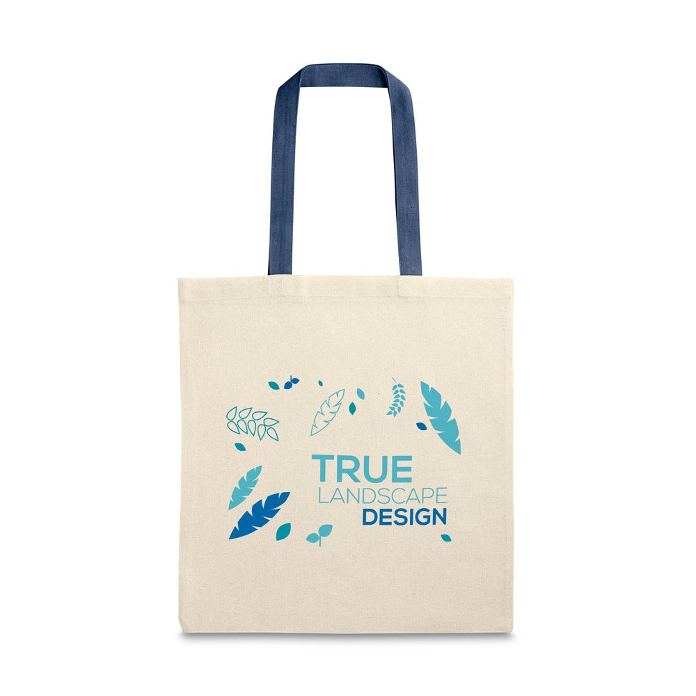 Sacola em 100% algodão (140 g/m²) com alças de 60 cm. 375 x 415 mm