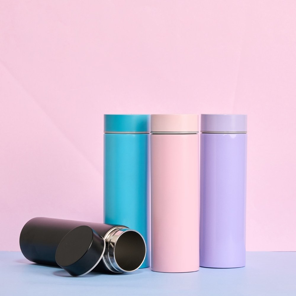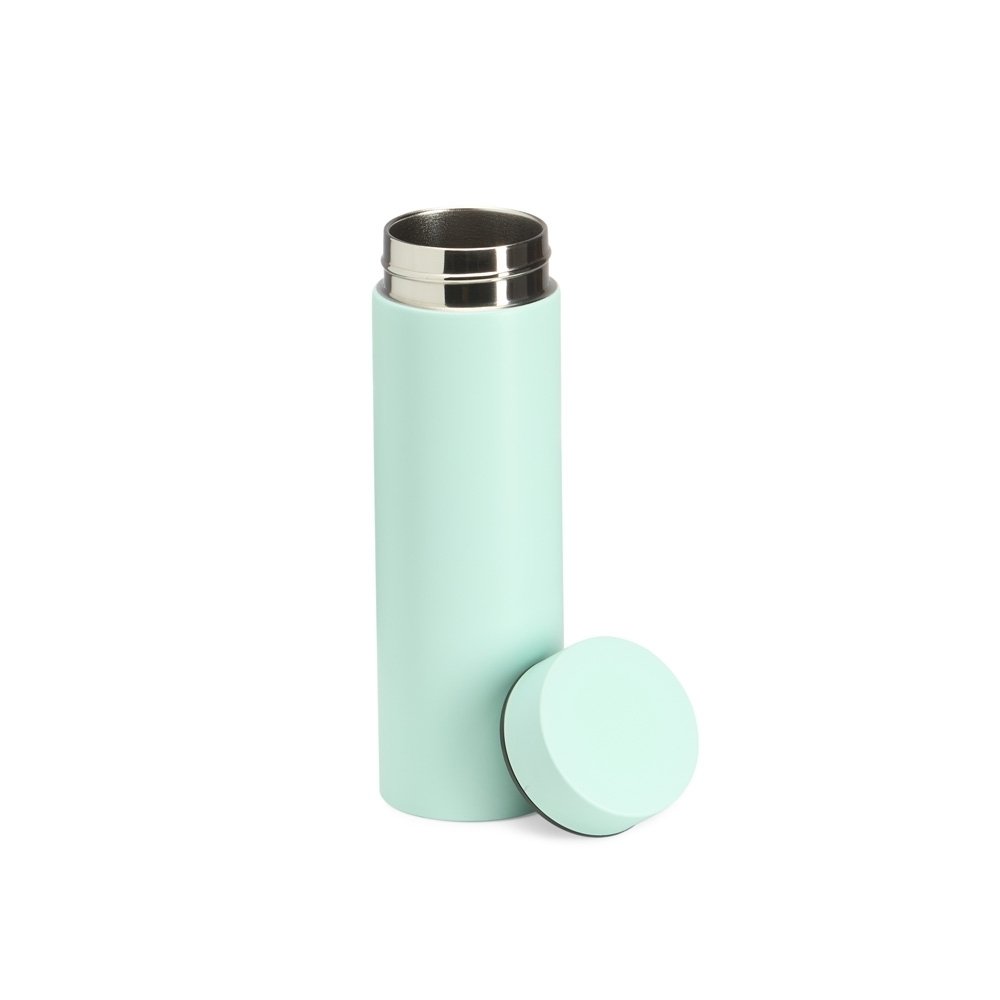 Garrafa térmica 240ml em inox com tampa rosqueável.