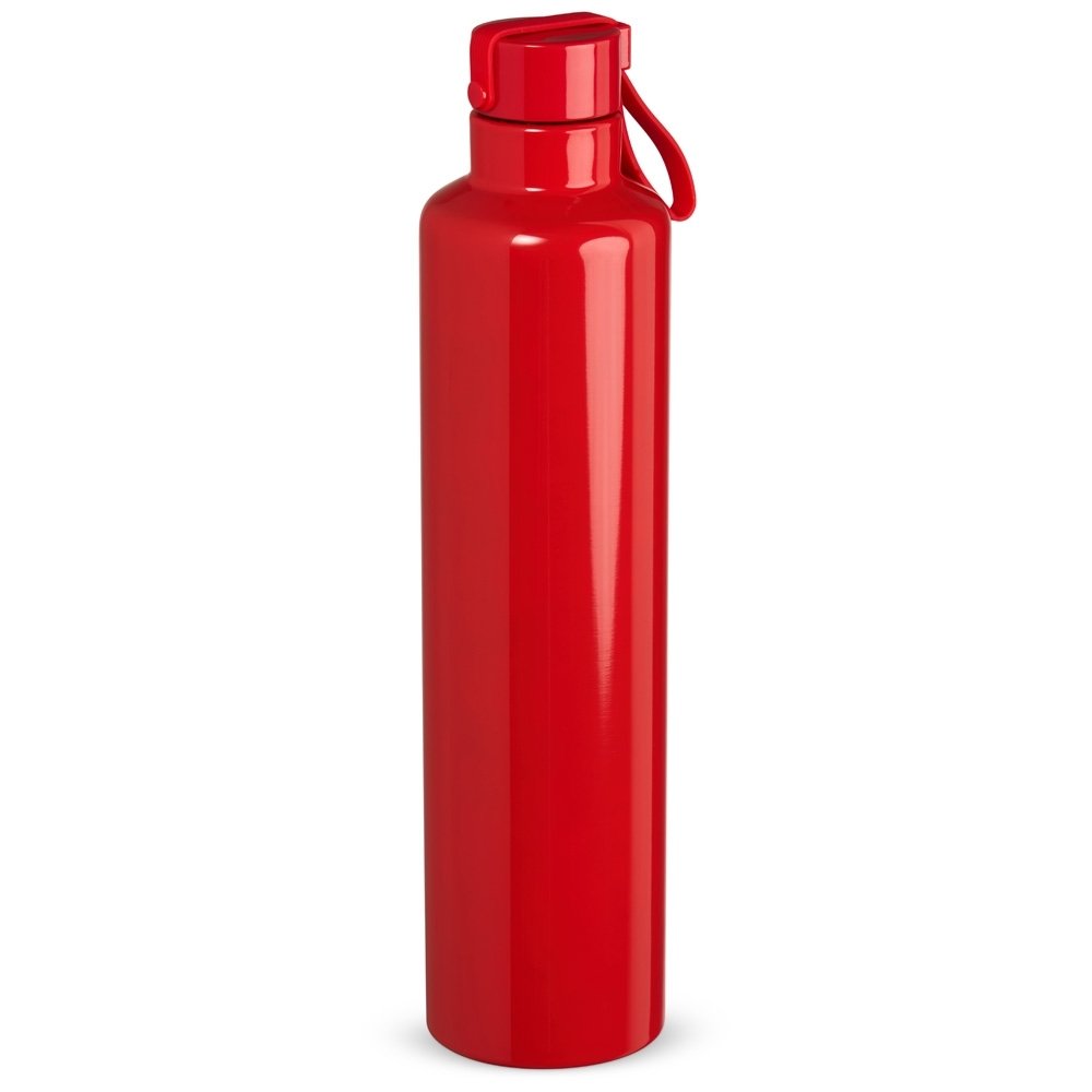 Garrafa térmica de inox 900ml. Contém tampa rosqueável e alça colorida de silicone acoplada na tampa. Altura :  32 cm Largura :  7,6 cm Circunferência :  24 cm Medidas aproximadas para gravação (CxL):  23 cm x 2,5 cm Peso aproximado (g):  425