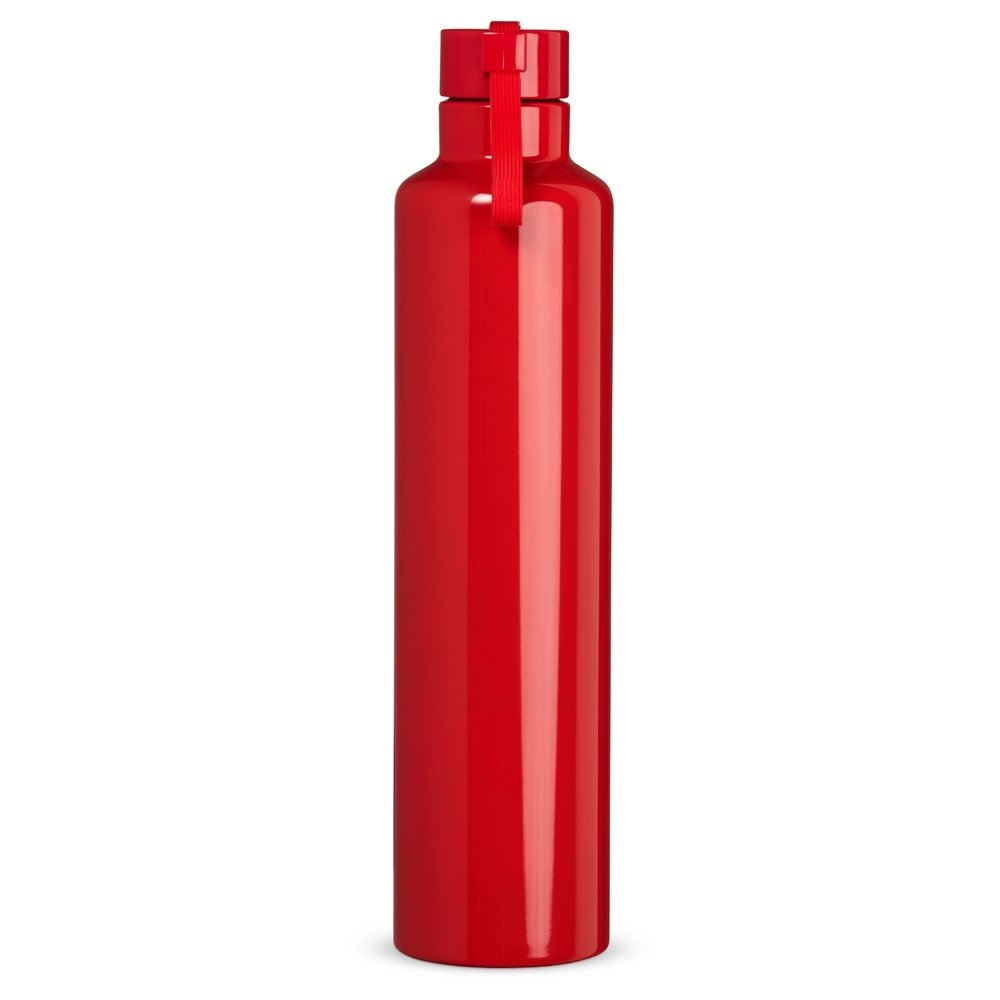 Garrafa térmica de inox 900ml. Contém tampa rosqueável e alça colorida de silicone acoplada na tampa.