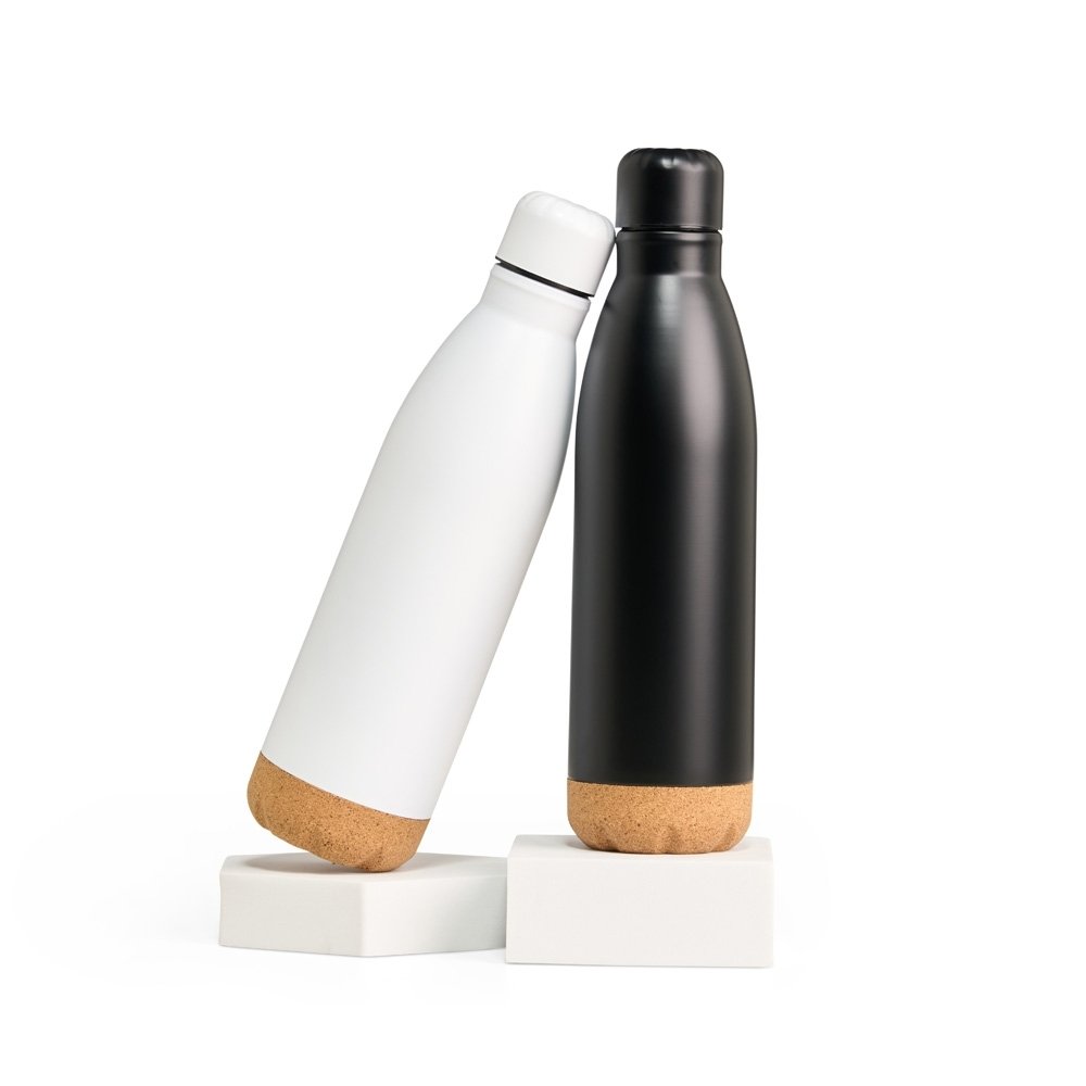 Garrafa Térmica feita em inox com capacidade de 500ml com detalhe em cortiça.