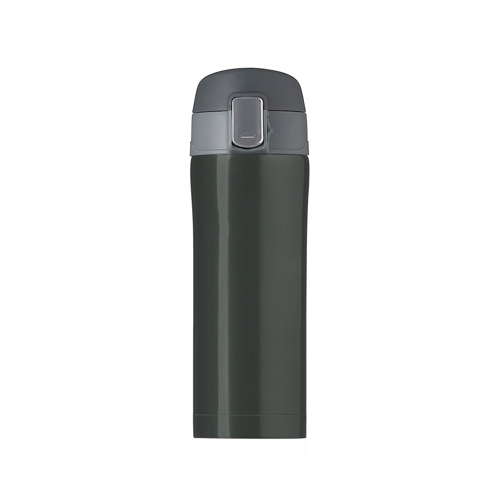 Garrafa térmica 350ml colorida com sistema de trava. Material metálico com revestimento interno em inox, possui tampa plástica fosca com borracha interna para vedação evitando o vazamento de líquido e prezando sua temperatura; possui botão central para abertura e trava lateral(basta seguir a orientação dos desenhos de cadeados simulando o travamento/destravamento da tampa).