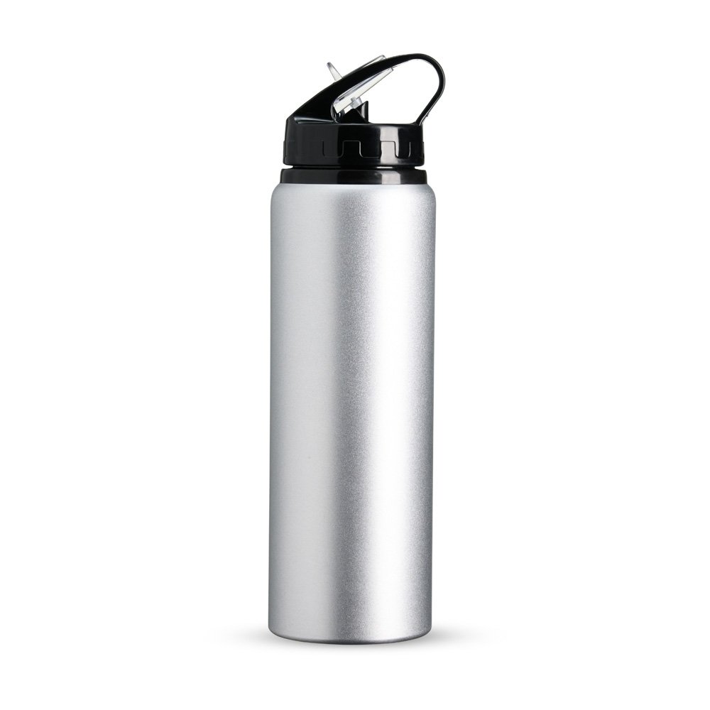 Squeeze de alumínio com capacidade de 800ml, tampa plástica com bico de canudo. Altura :  25,8 cm Largura :  7,4 cm Circunferência :  23,3 cm Medidas aproximadas para gravação (CxL):  18 cm x 3 cm Peso aproximado (g):  127