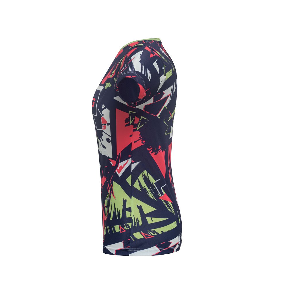 Camiseta feminina de corte cinturado em malha 100% polyester fiado (135 g/m2) com fio 30/1 polyester. Com gola em ribana 1×1 com fita de reforço e com costura dupla nas mangas, barra de fundo e laterais. Produto contém certificação ABVTEX . Tamanhos: P, M, G, GG