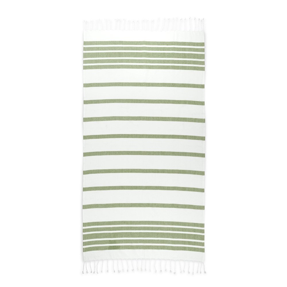 Toalha de praia em algodão 70% reciclado e poliéster 30% reciclado (180 g/m²), com um design minimalista e elegante para os seus dias de praia