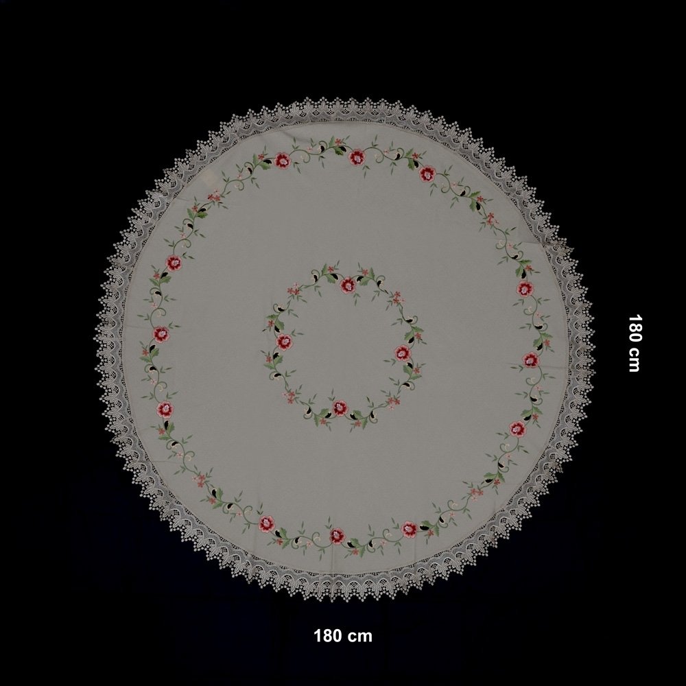 Toalha de Mesa Redonda em tecido 100% Poliéster. Largura :  180 cm Comprimento :  180 cm Peso aproximado (g):  656