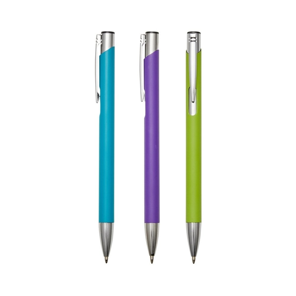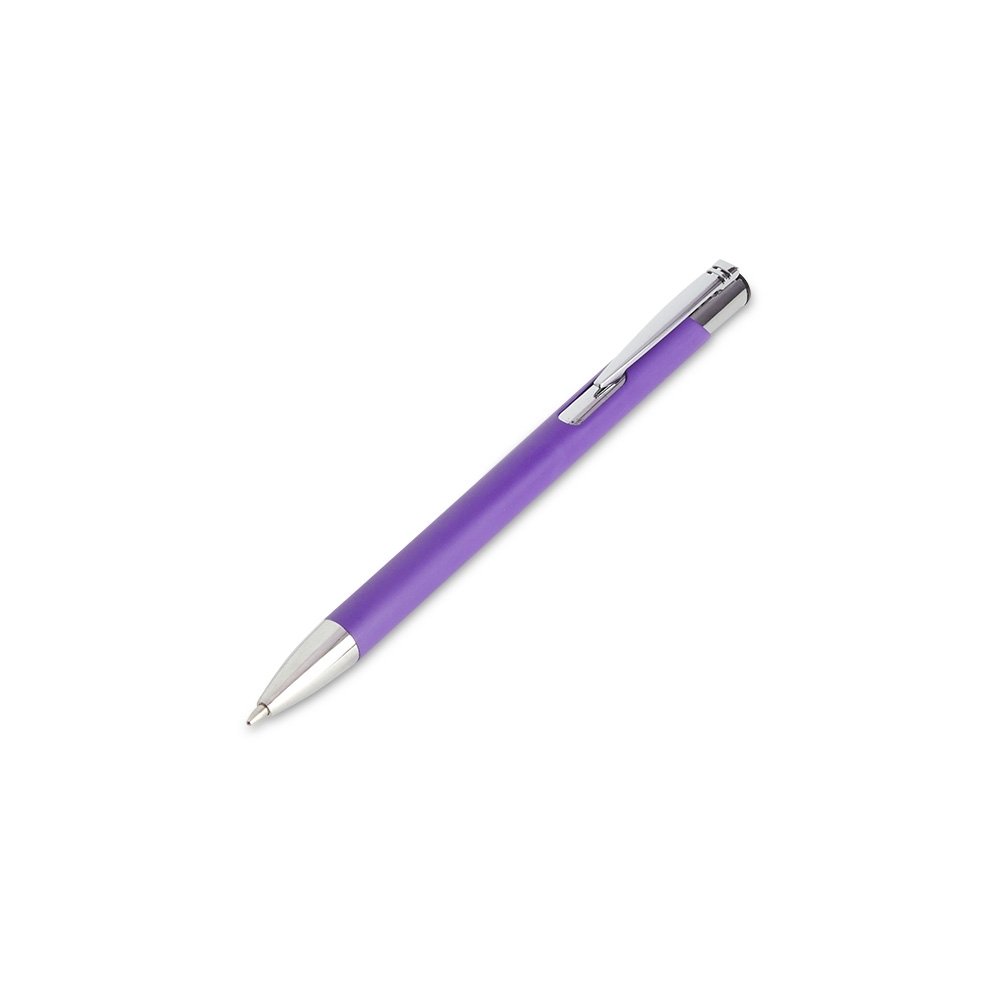 Caneta metálica com carga esferográfica azul 1.00mm e acionamento por clique.