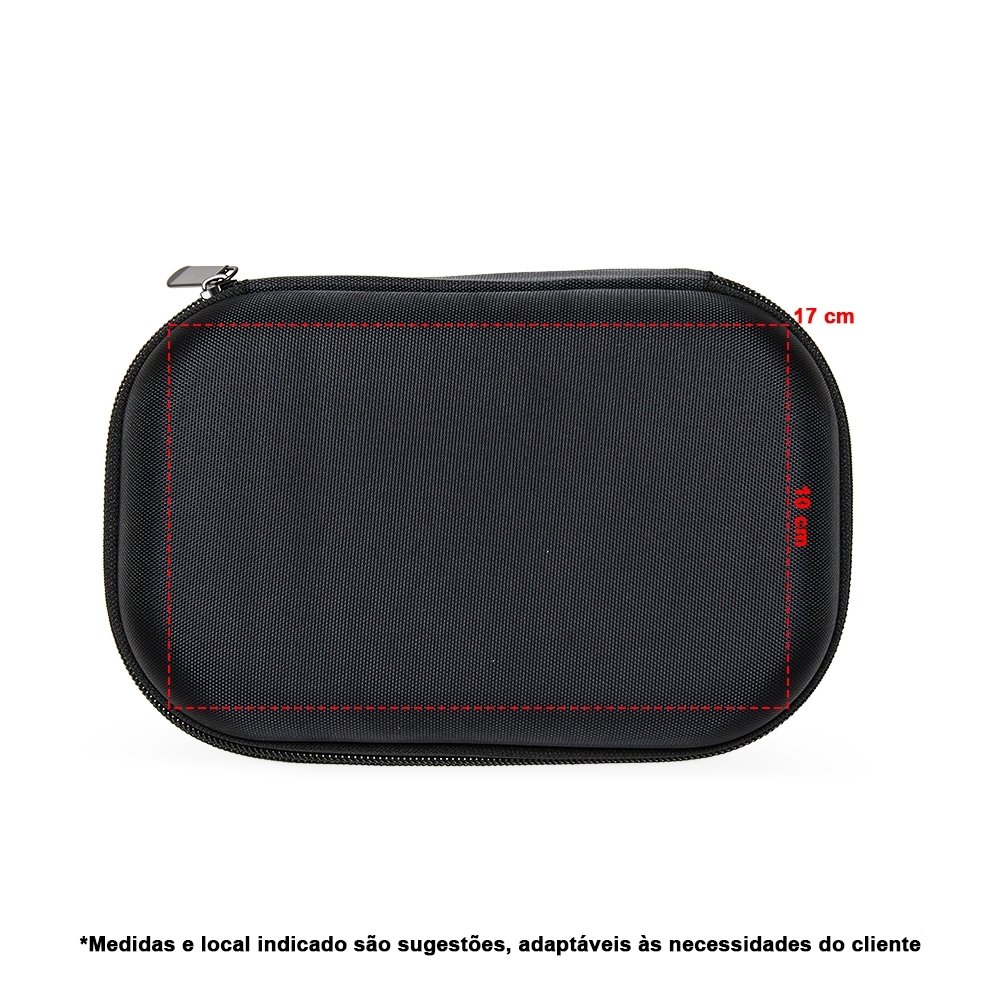 Estojo de nylon com telas organizadoras e interior forrado. Case utilizado para montagem de kits tecnológicos. Altura :  5,3 cm Largura :  13,7 cm Comprimento :  20,5 cm Medidas aproximadas para gravação (CxL):  10 cm x 17 cm Peso aproximado (g):  98 Disponibilidade :  Indisponível